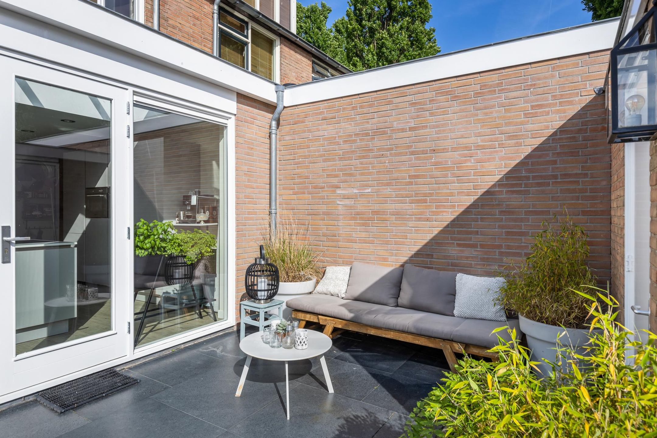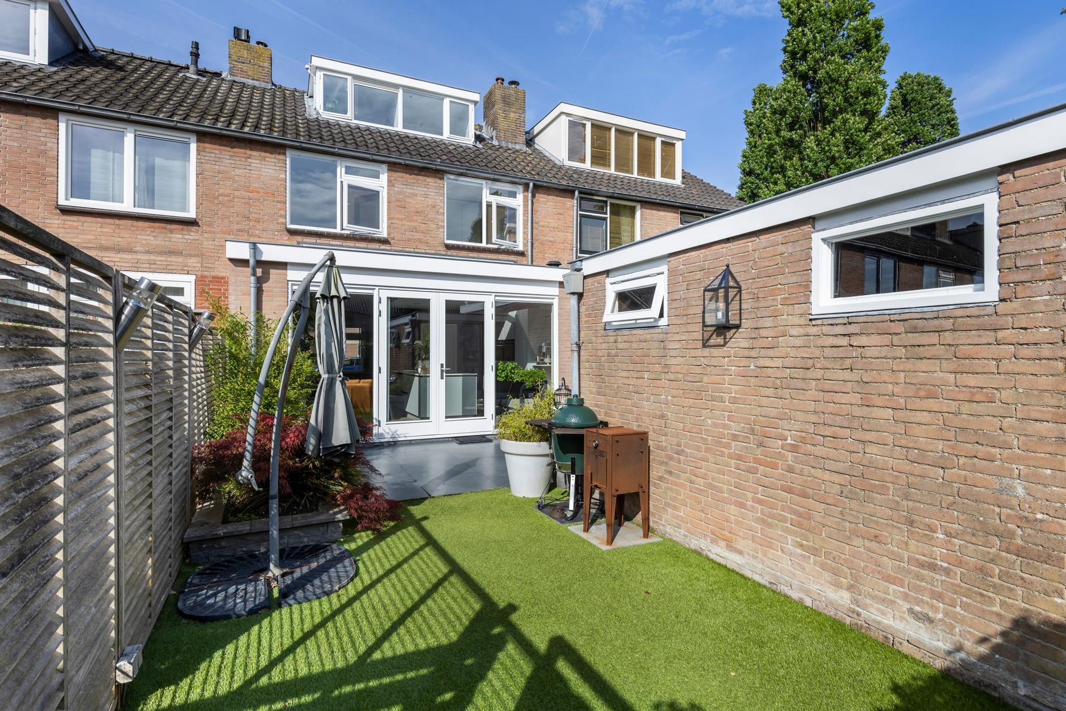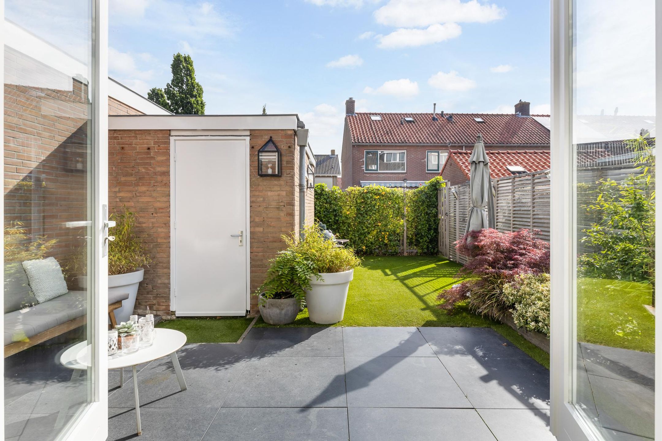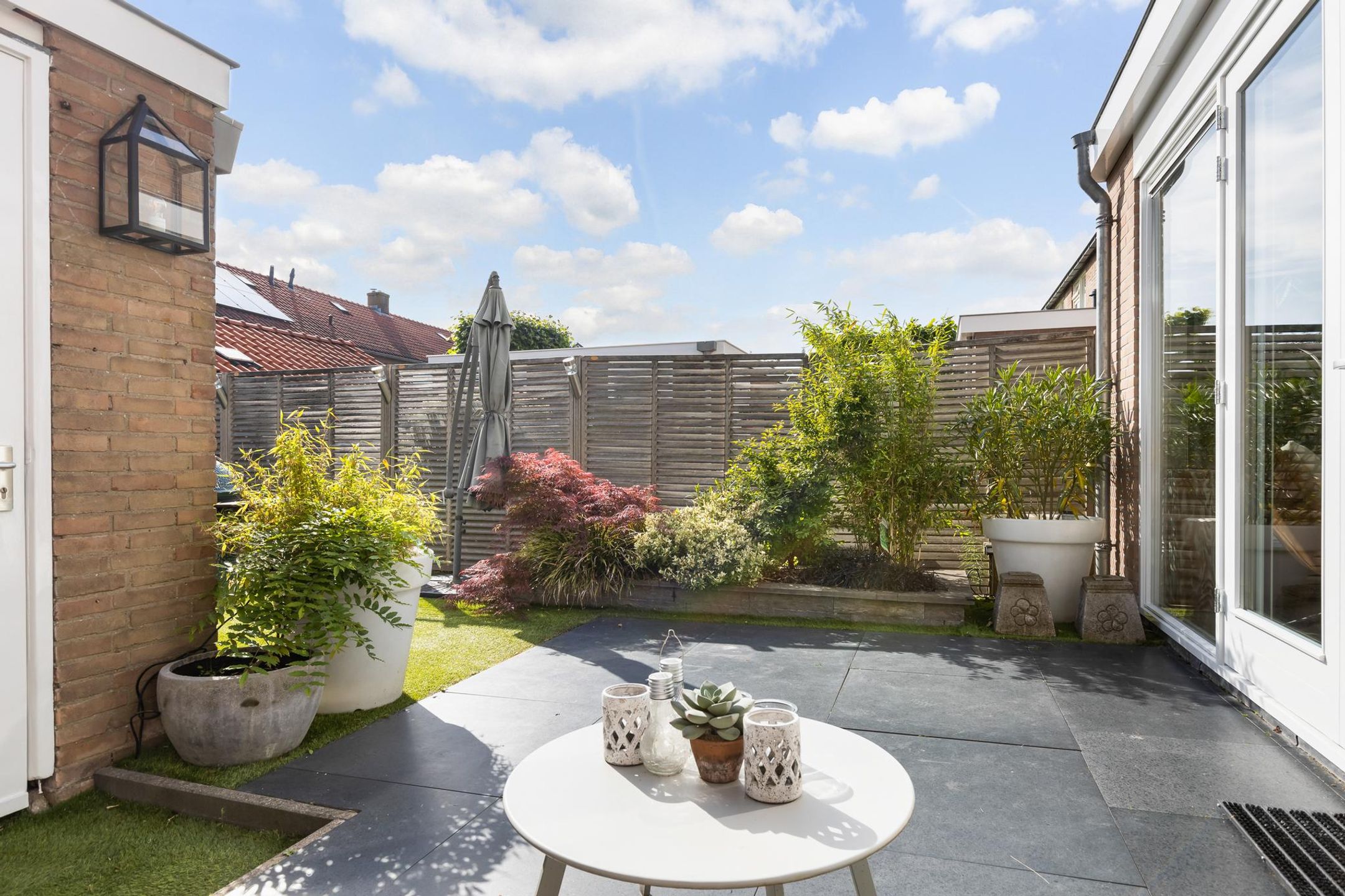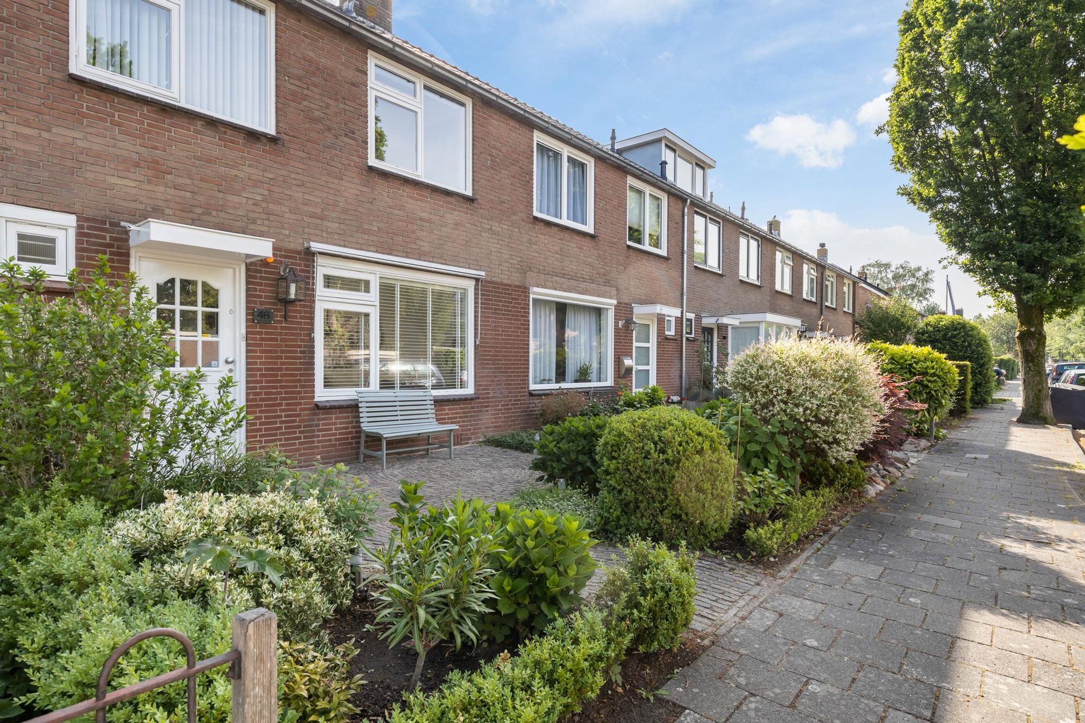 Onderhoudsvriendelijke voortuin gelegen op het Westen.
