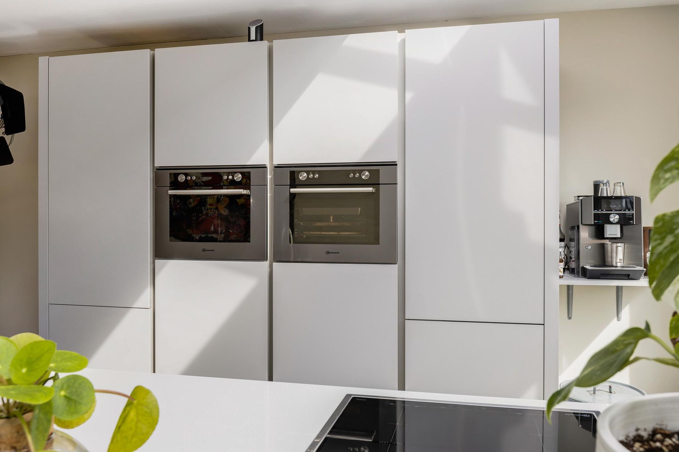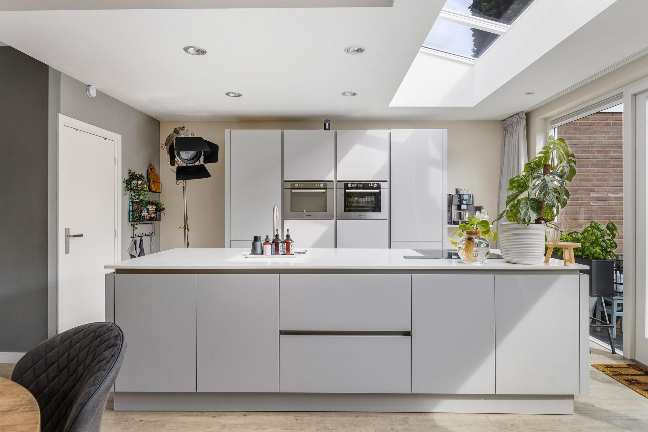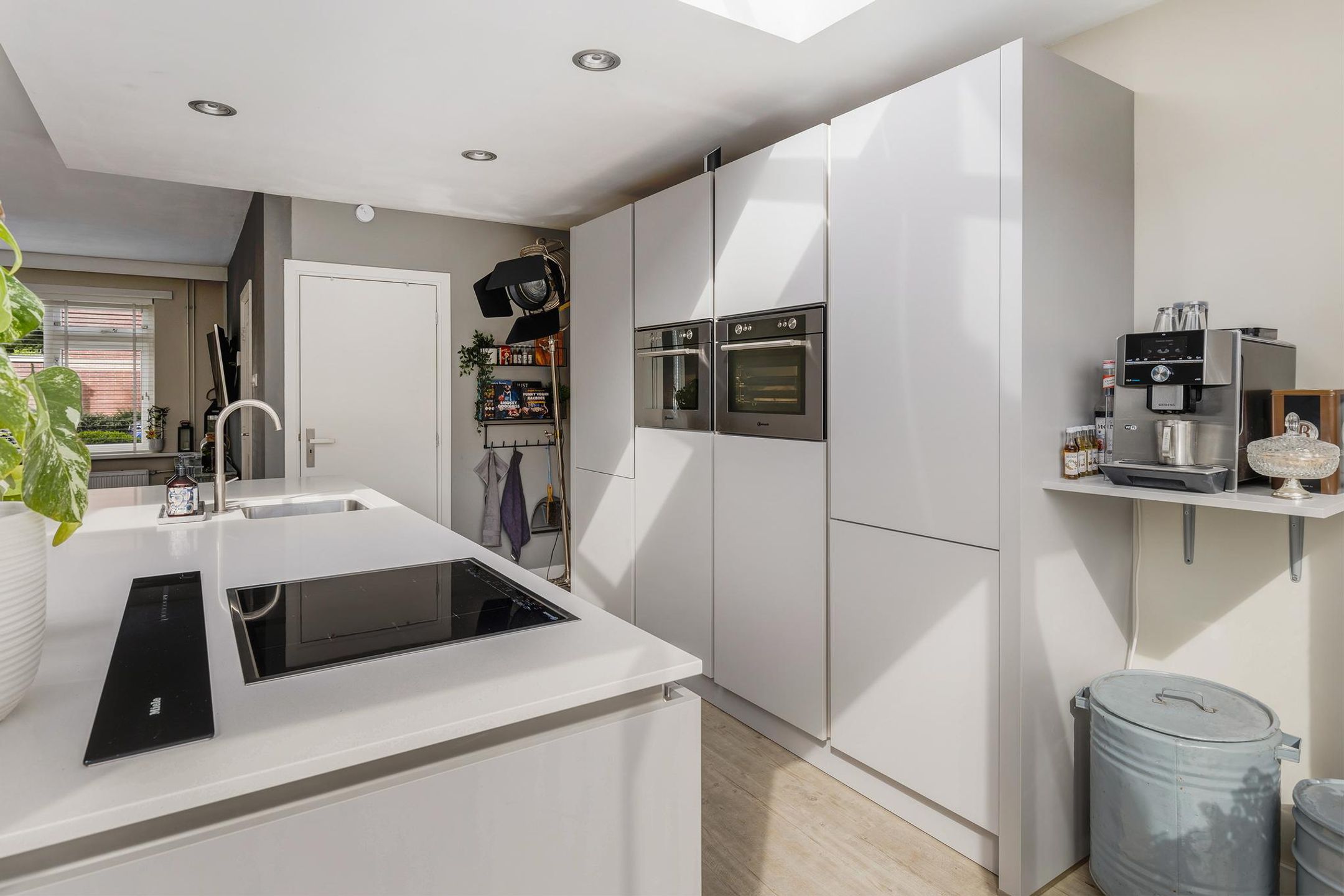 De keuken is voorzien van een ruim kookeiland met een 4-pits inductie kookplaat van Bauknecht met Miele afzuiging welke met een modern systeem omhoog komt uit het kookeiland. Het kookeiland is tevens voorzien van een spoelgelegenheid, een vaatwasmachine en voldoende kastruimte. ?De wand achter het kookeiland is voorzien van een ruime koelkast en vriezer, combi oven-magnetron en stoomoven. Ook hier is verder voldoende kastruimte aanwezig!