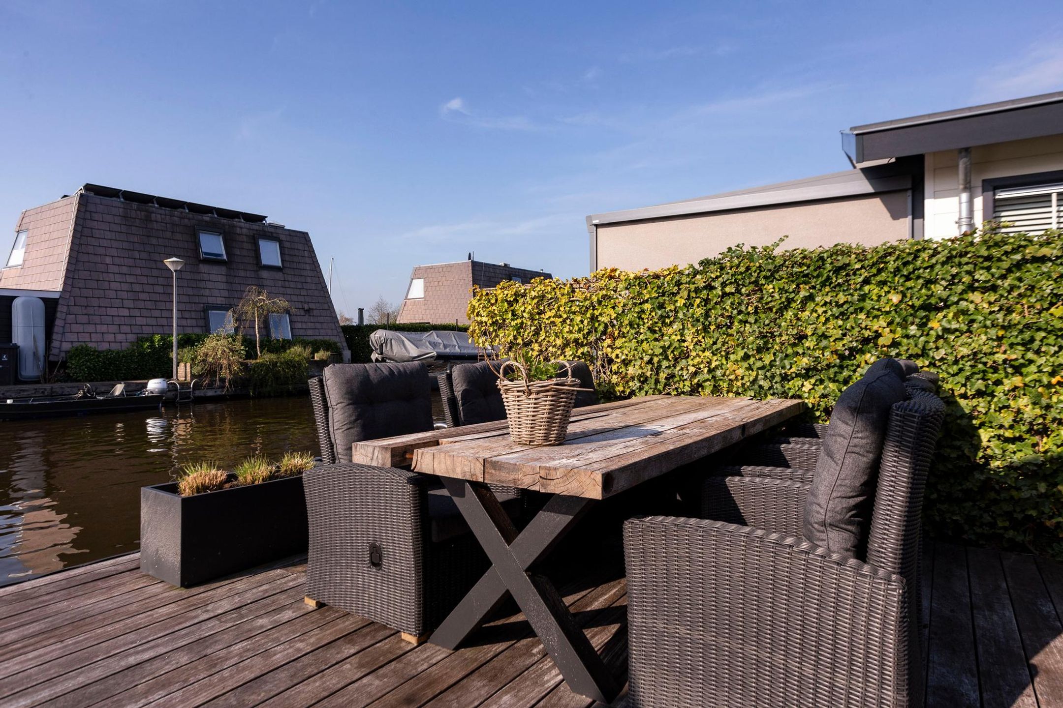 De recreatievilla beschikt over een praktisch aangelegde tuin met een gezellig en zonnig terras, gelegen op het zuiden, direct aan het water en voorzien van een aanlegsteiger.