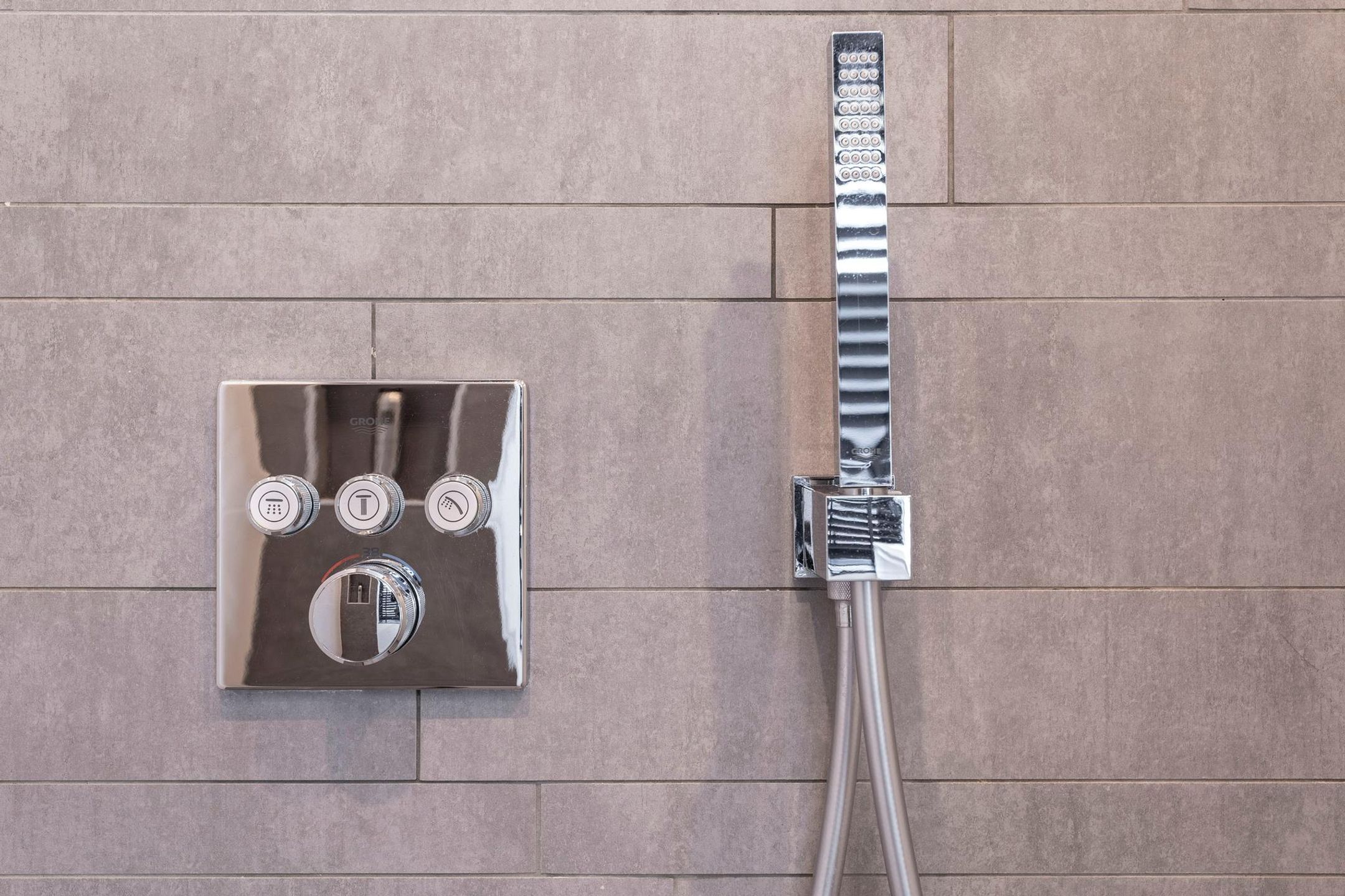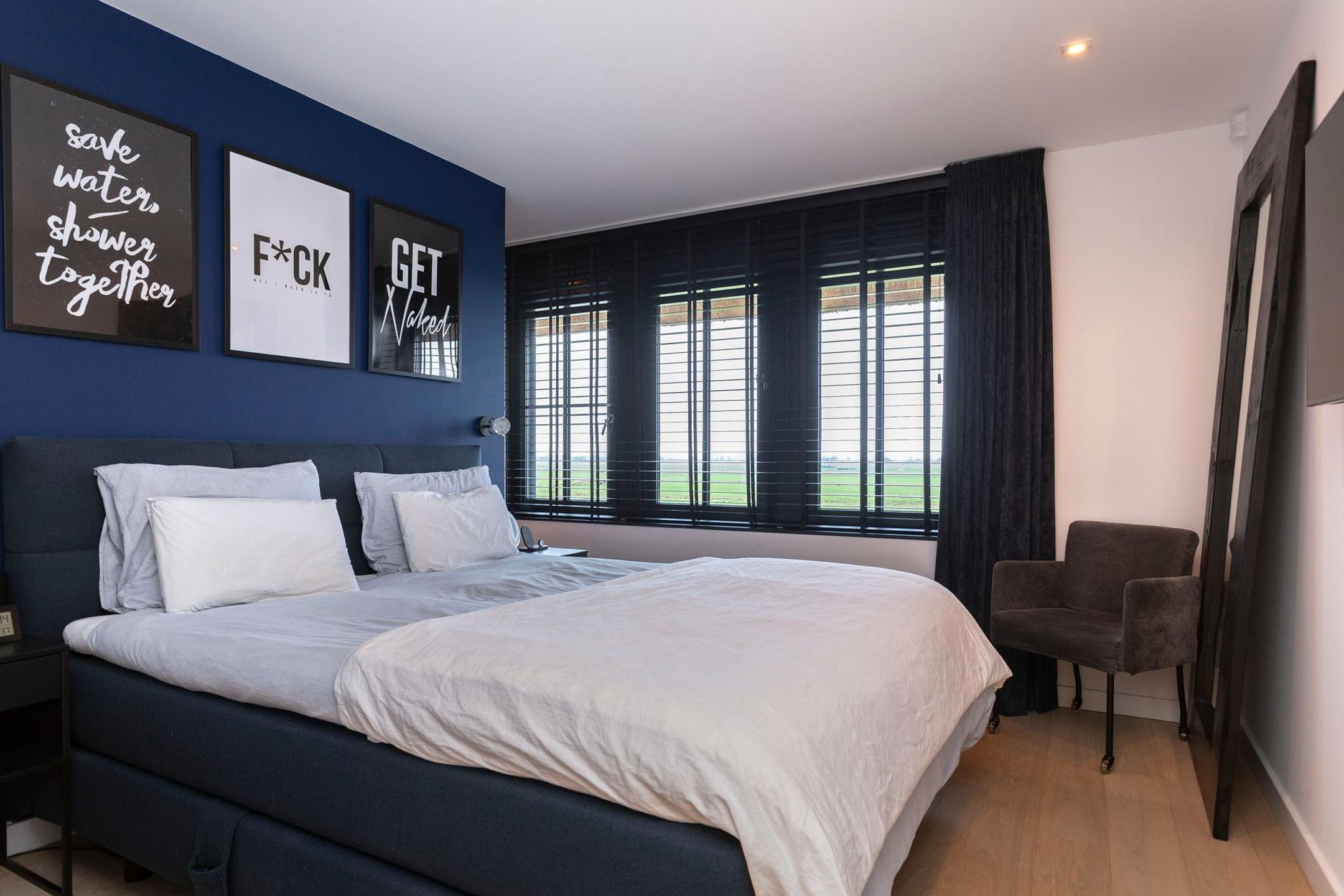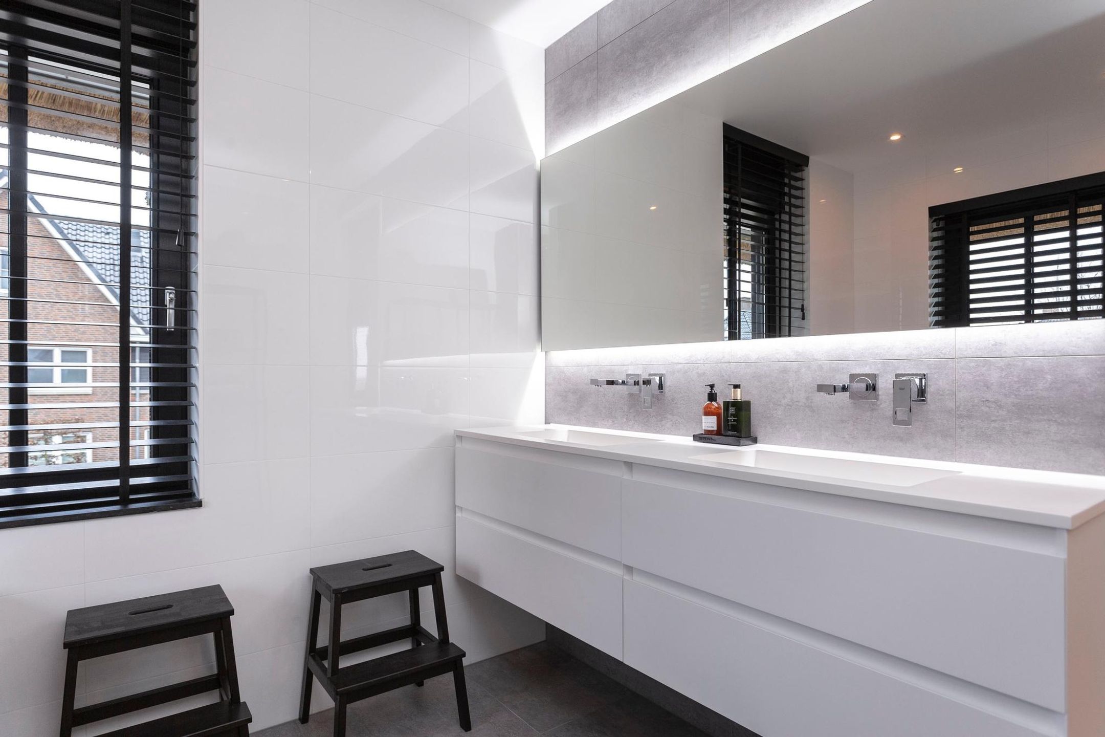 De “master bedroom” is aan de achterzijde van de woning gerealiseerd. Deze kamer heeft uitzicht over de weilanden, een op maat gemaakte inloop kast en een eigen badkamer. Deze tweede badkamer is tevens ook voorzien van vloerverwarming, een groot wastafelmeubel met twee wastafels en een inloopdouche met twee douchekoppen. Badkamer apparatuur is allemaal van het merk Grohne.