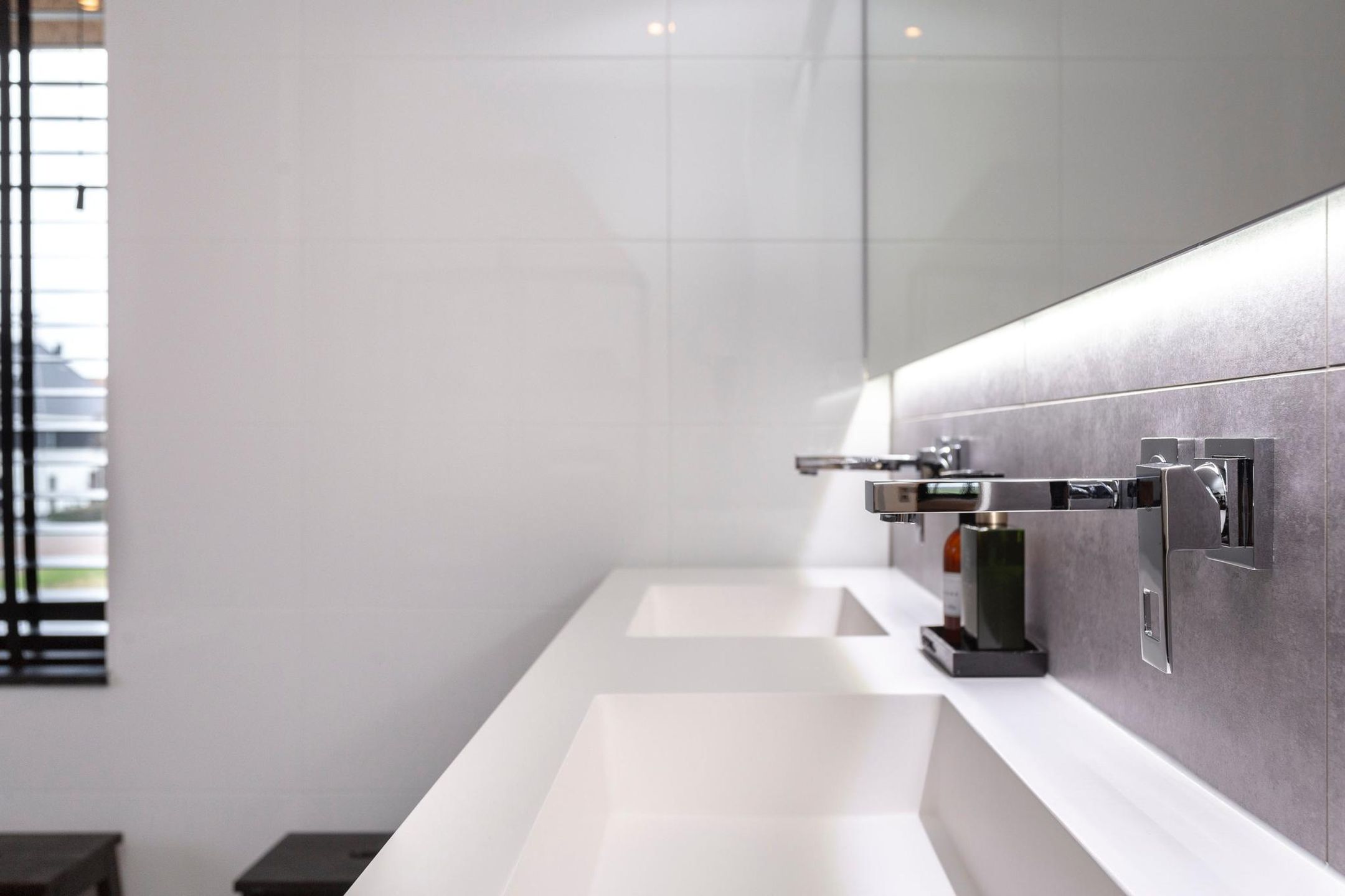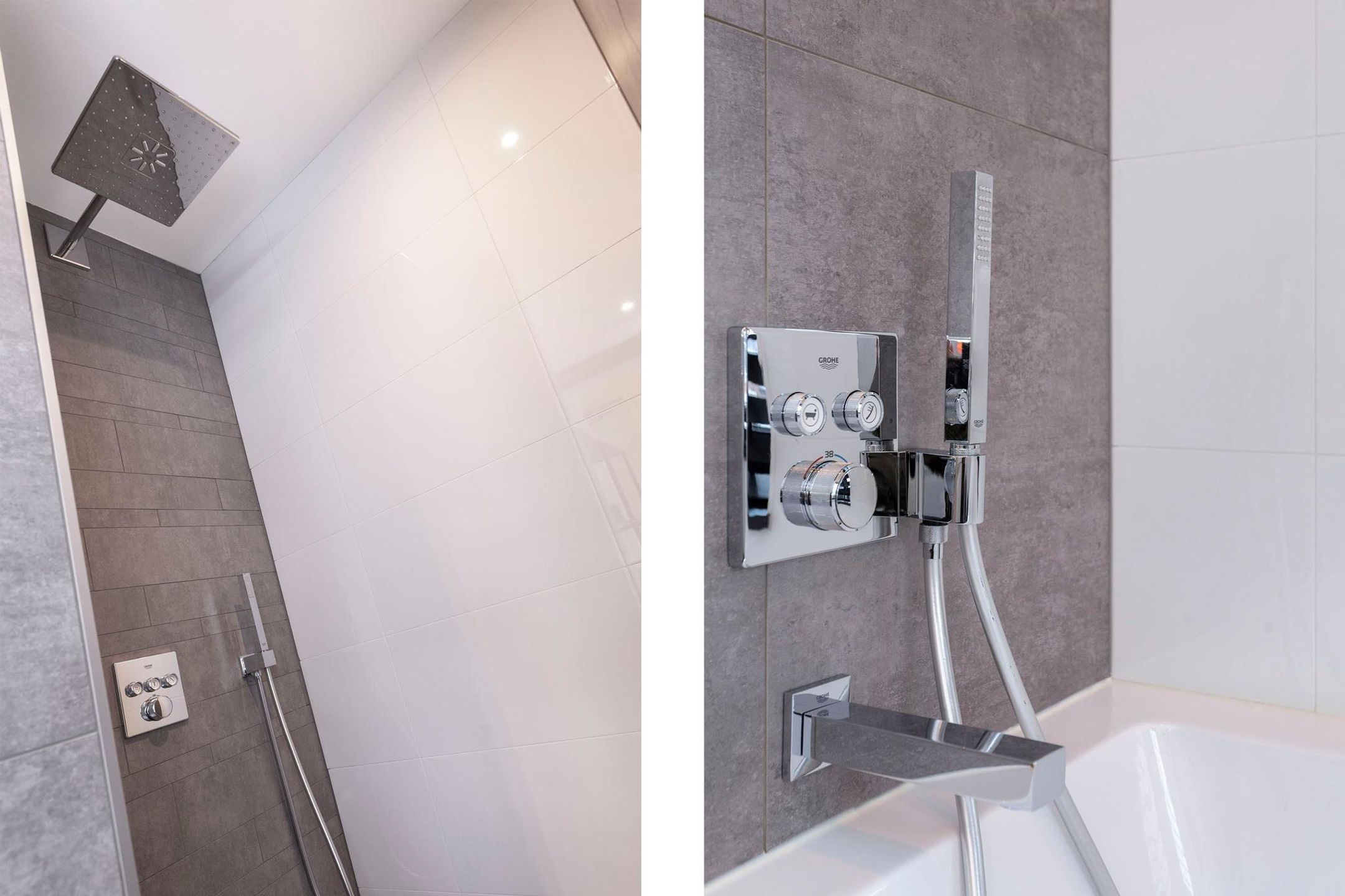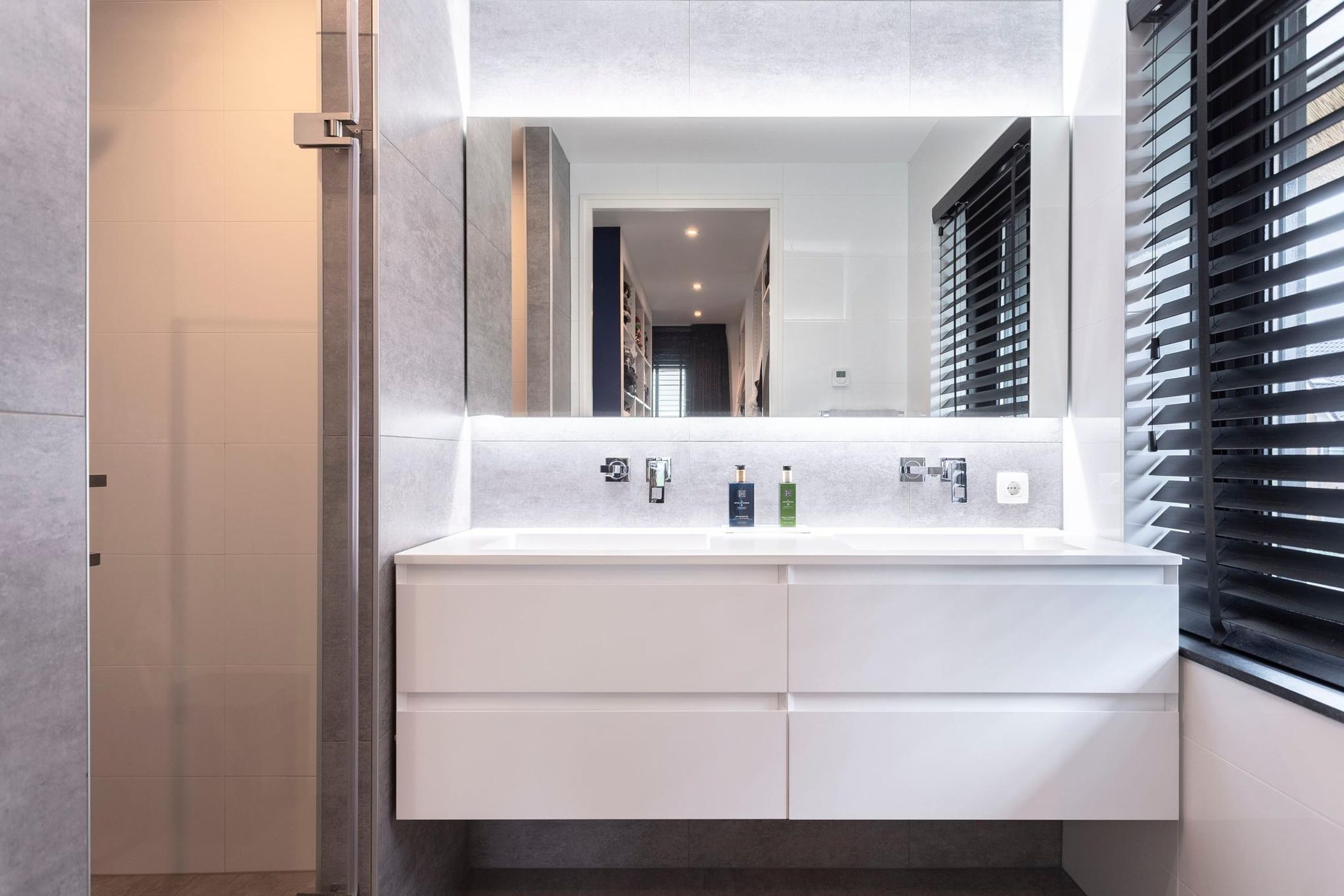 Deze twee slaapkamers hebben een eigen badkamer welke is voorzien van vloerverwarming, groot wastafelmeubel met twee wastafels, inloopdouche en ligbad.