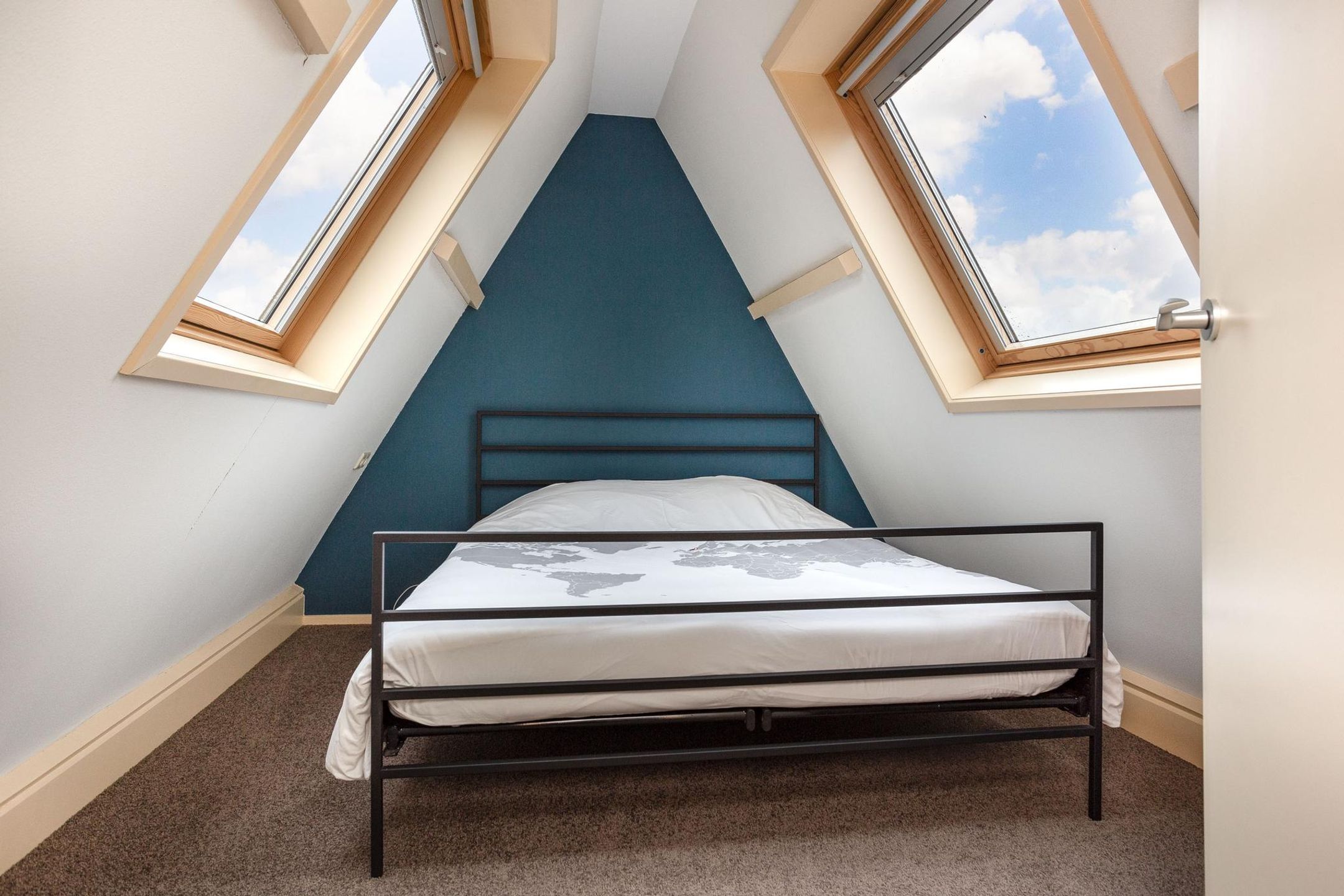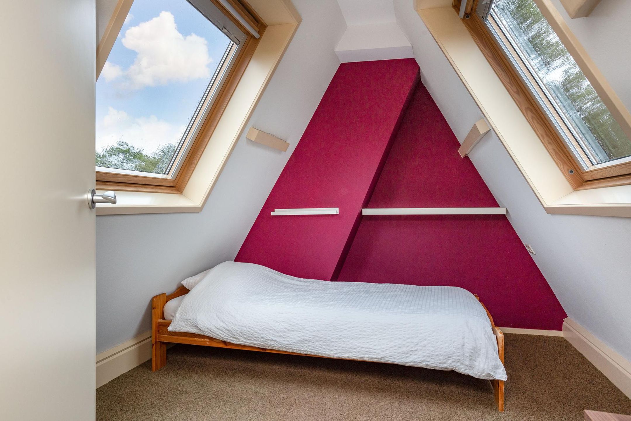 Trapopgang welke u toegang geeft tot nog 2 kleinere slaapkamers welke beide voorzien zijn van twee Velux dakvensters waardoor de slaapkamers erg licht zijn. Ook deze slaapkamers zijn voorzien van vloerbedekking.