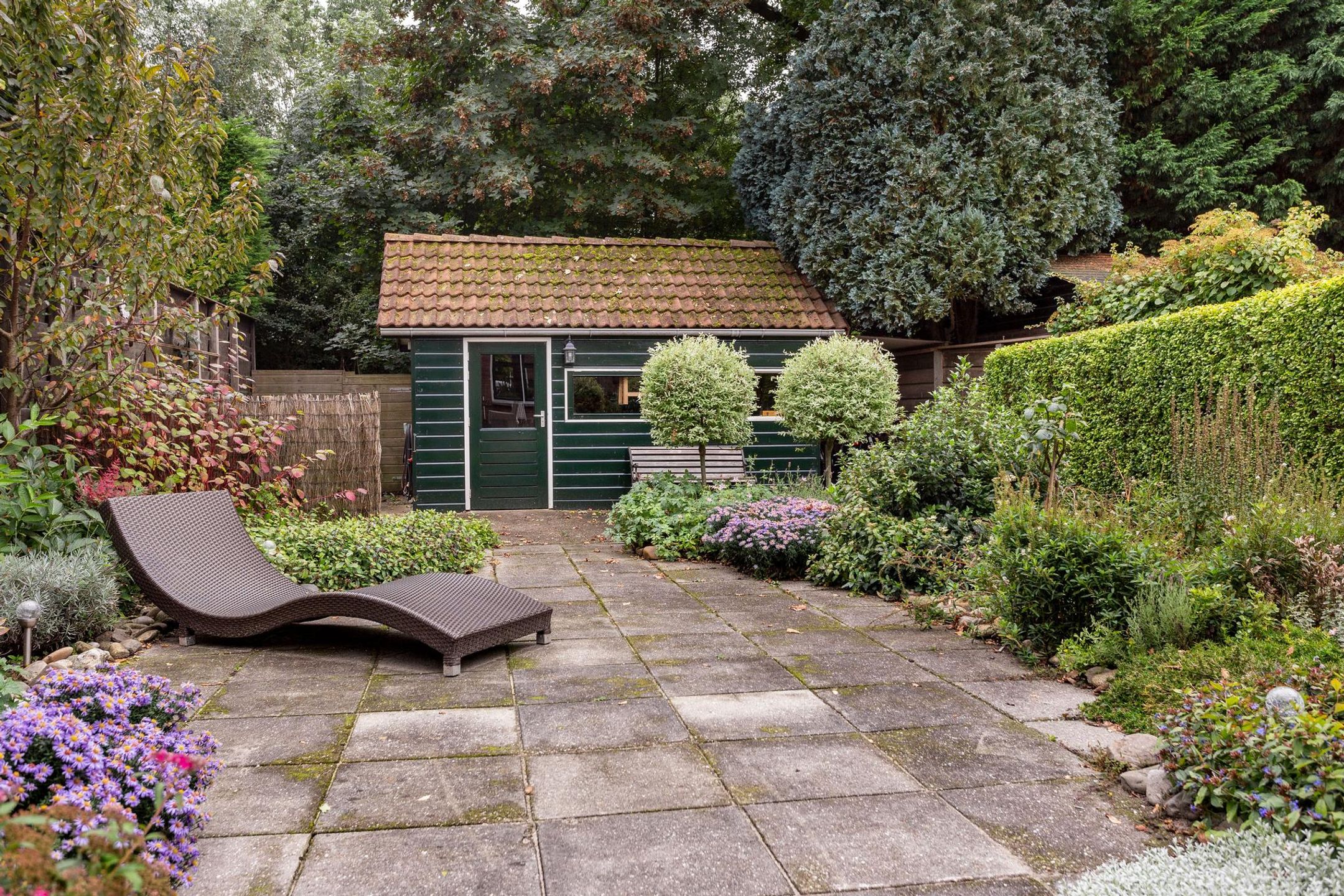 Achterin de tuin staat een ruime houten schuur waar u veel tuinspullen, fietsen etc kunt opbergen. Deze berging is voorzien van elektra.