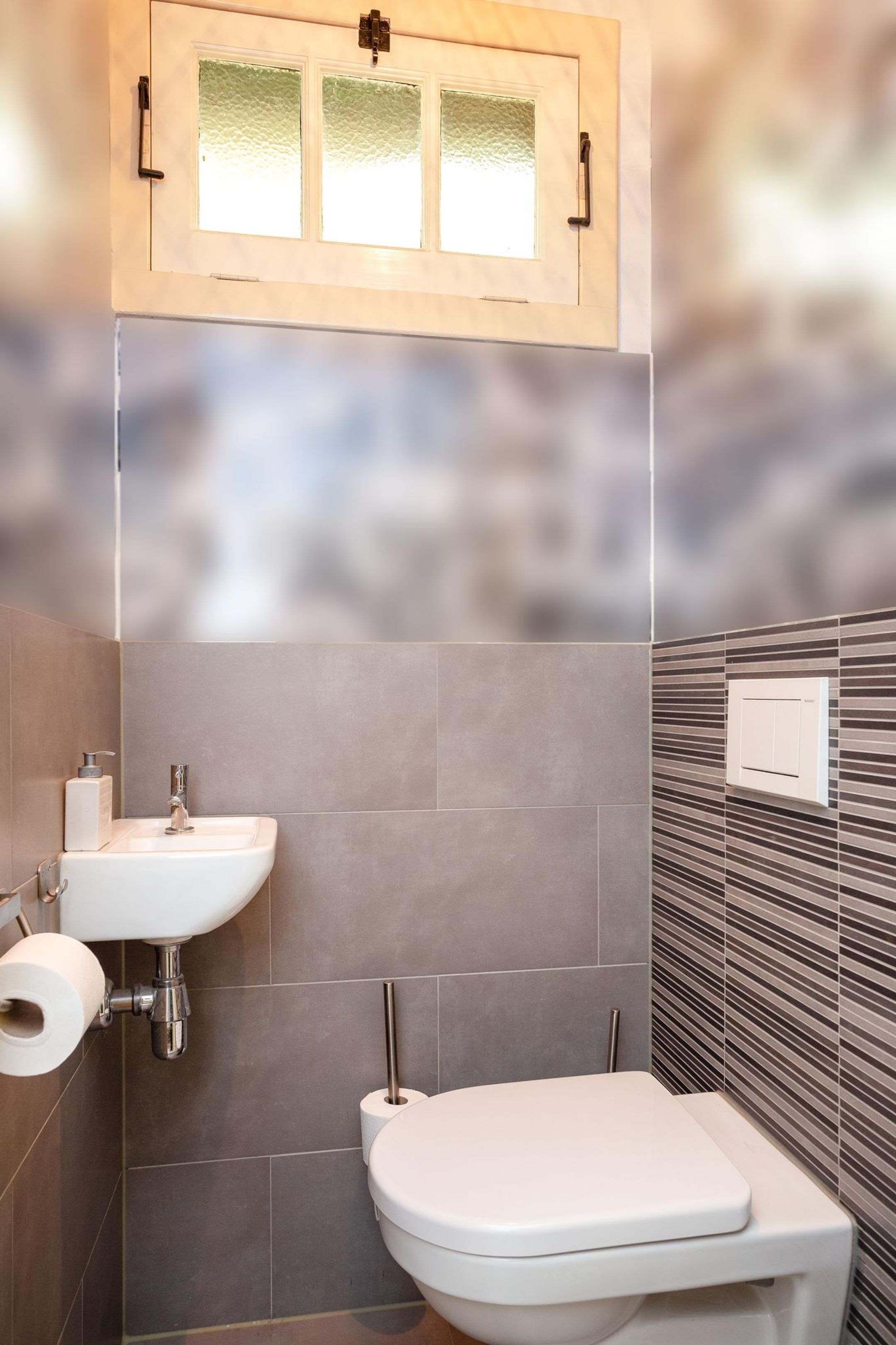 De badkamer is voorzien van een ligbad, douche, wastafelmeubel en vloerverwarming. Het tweede toilet is apart in de hal gesitueerd. De slaapkamers op de eerste verdieping zijn voorzien van vloerbedekking en de hal van een laminaat vloer.